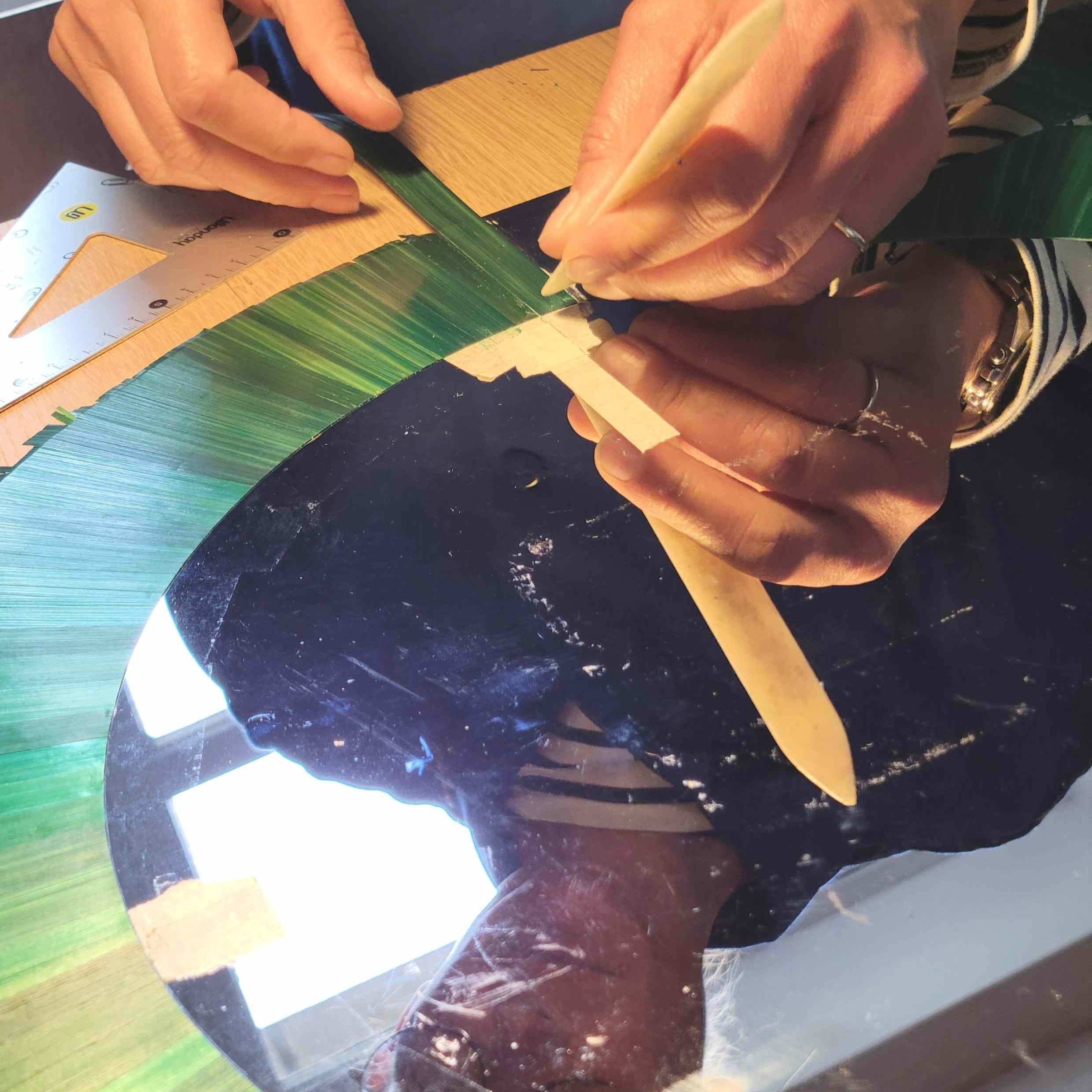 Cette création est un lien entre des métiers qui disparaissent, un artisan d’art qui interroge les limites d’un matériau et les dépasse grâce aux techniques de l’industrie, projetant ainsi sa pratique, la marqueterie de paille, dans le futur.